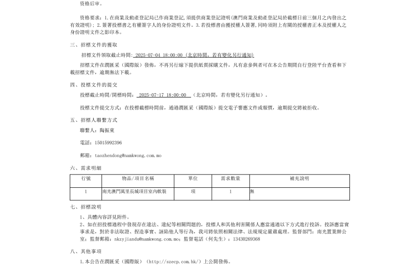 南光澳門萬里長城項(xiàng)目室內(nèi)軟裝招標(biāo)公告.pdf
