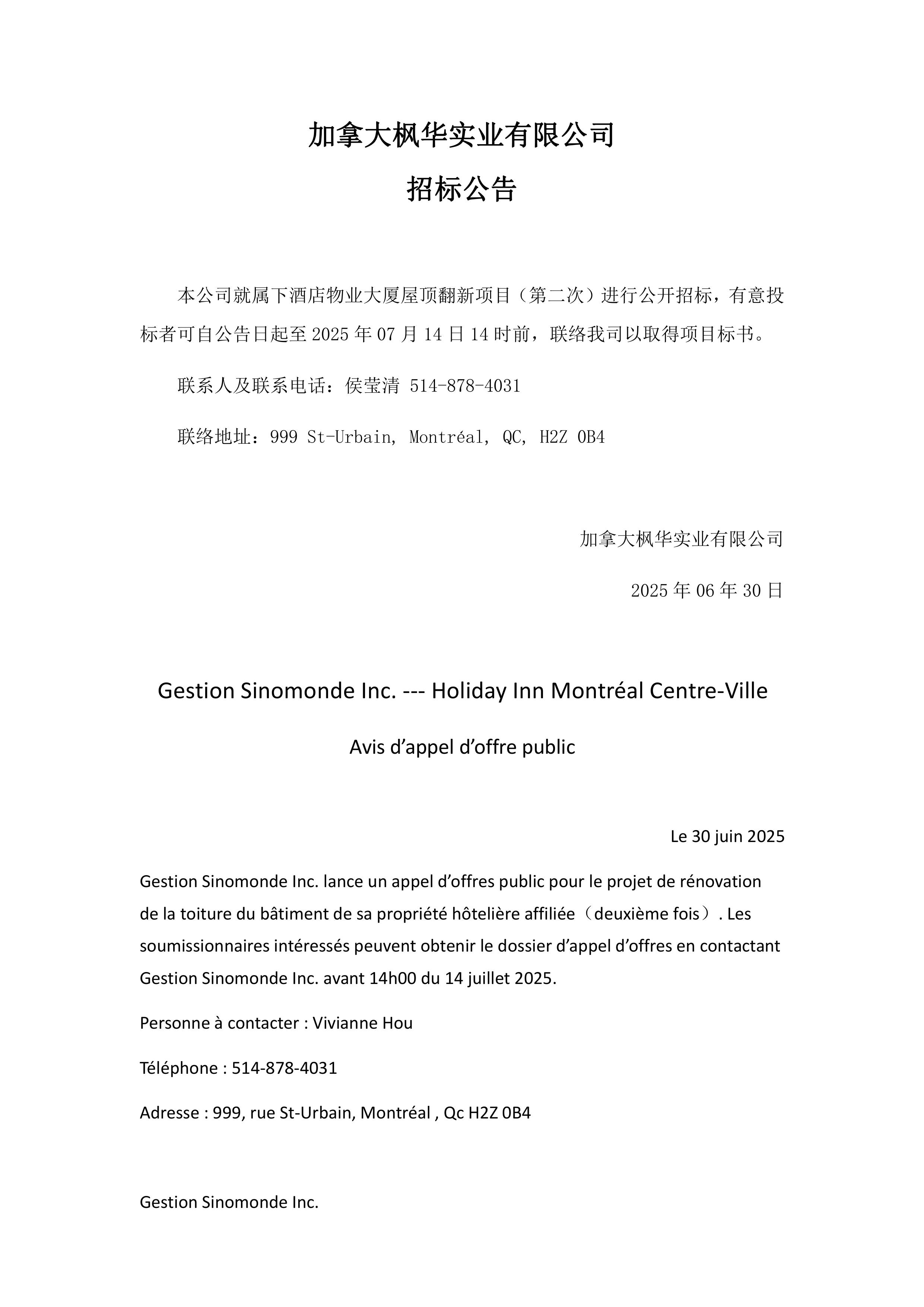 加拿大楓華實(shí)業(yè)有限公司招標(biāo)公告.pdf