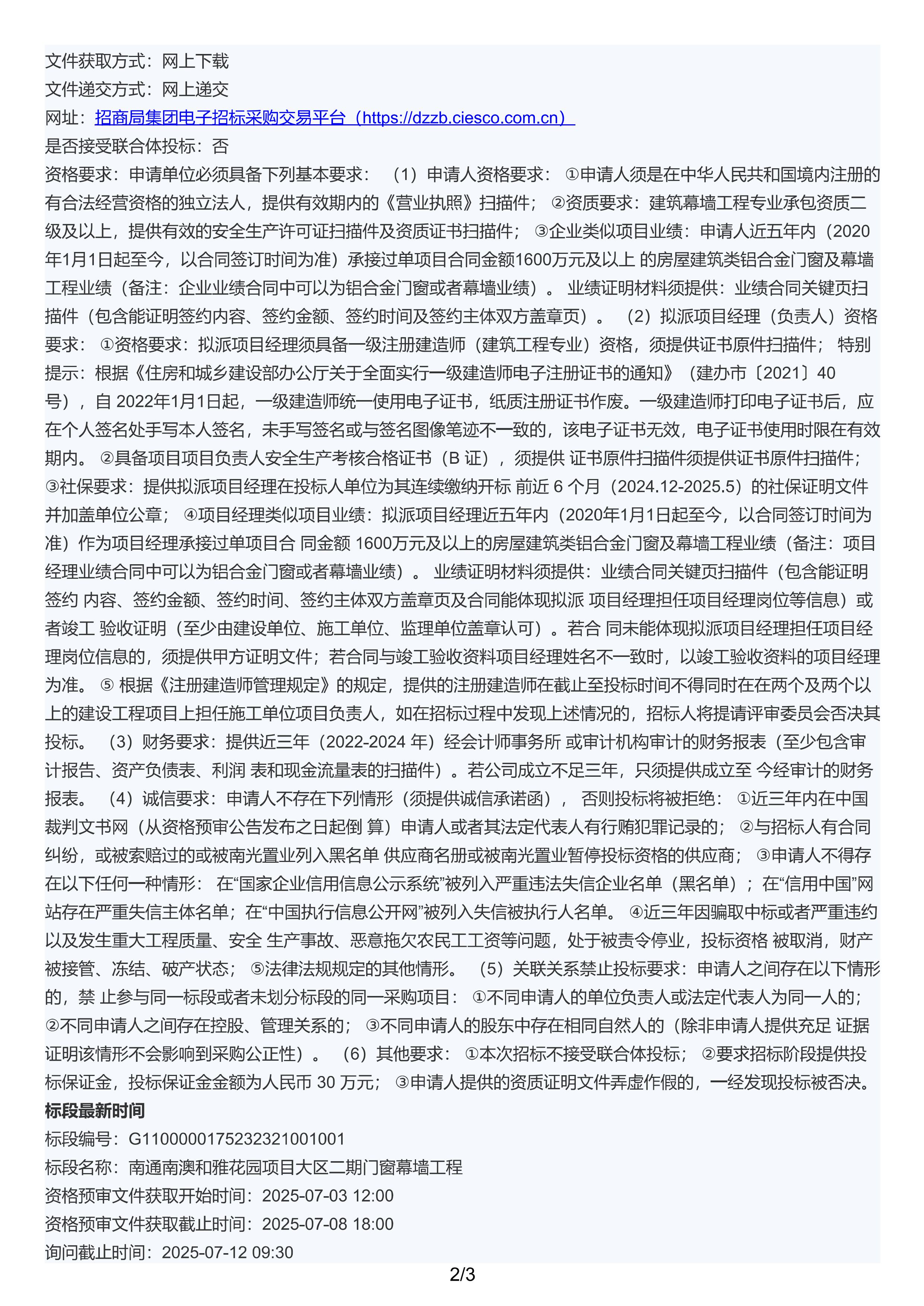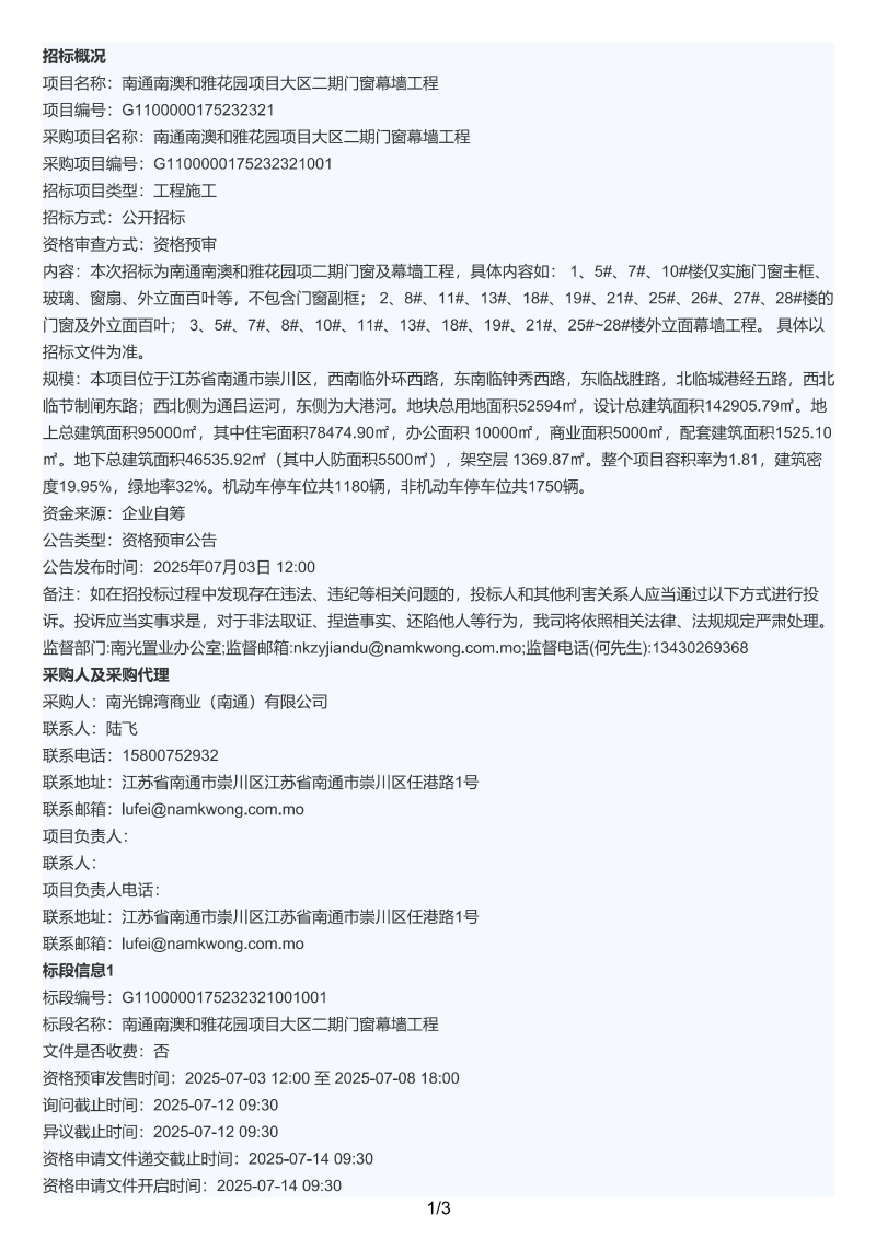 南通南澳和雅花園項目大區(qū)二期門窗幕墻工程資格預(yù)審公告.pdf